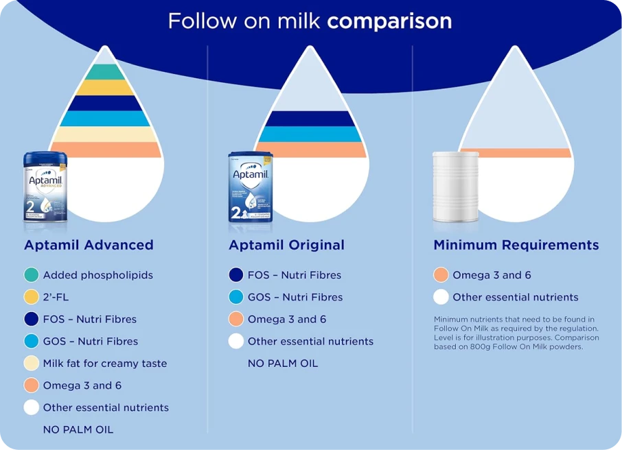 Aptamil Follow On Milks are designed to support your baby's growing nutritional needs from 6 to 12 months, to complement a weaning diet.