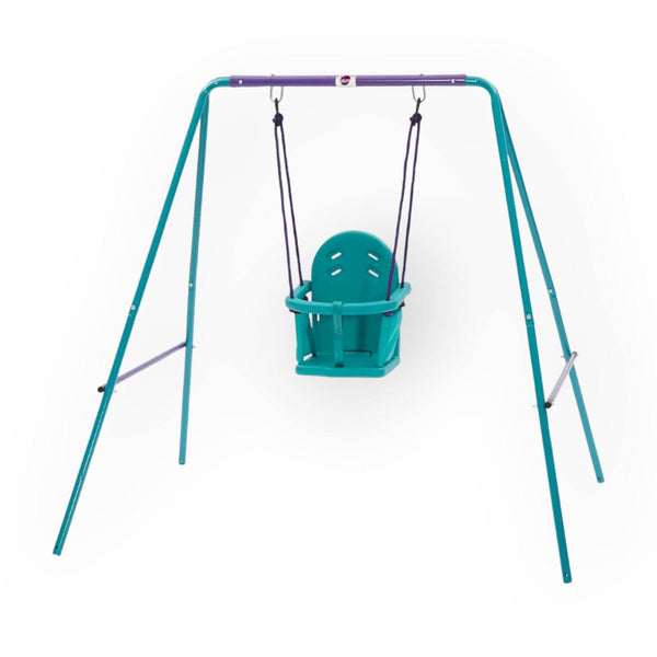 Product Description : The Plum 2-in-1 Metal Swing Set is designed to grow with your child, offering long-lasting outdoor fun. This adjustable swing set easily transforms from a baby swing with...