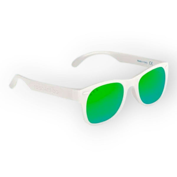 Roshambo Ice Ice Baby White Shades - Junior (5+ Yrs) - Mirrored Green Add a pop of cool to your kid's style with the Roshambo Ice Ice Baby White Shades!...