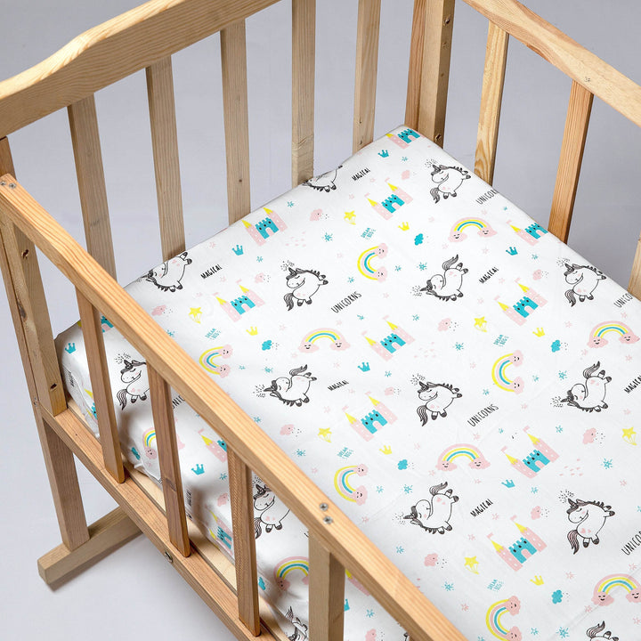 Our organic cotton reversible Bumpers act as cushions when babies roll to the sides and protects them from sliding their hand or legs between the rails. The fitted crib sheet come with elastic on the sides to keep the sheet in place.