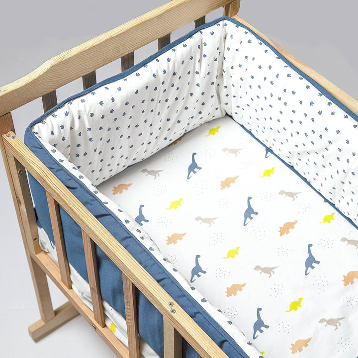 Our organic cotton reversible Bumpers act as cushions when babies roll to the sides and protects them from sliding their hand or legs between the rails. The fitted crib sheet come with elastic on the sides to keep the sheet in place.