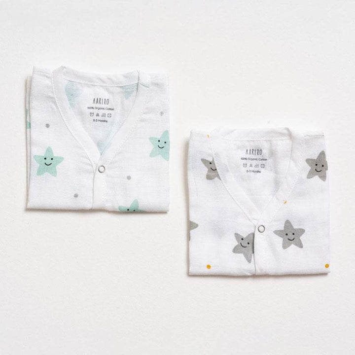 Aariro Muslin Jabla set - Mint Smiley Star (2 Pcs)