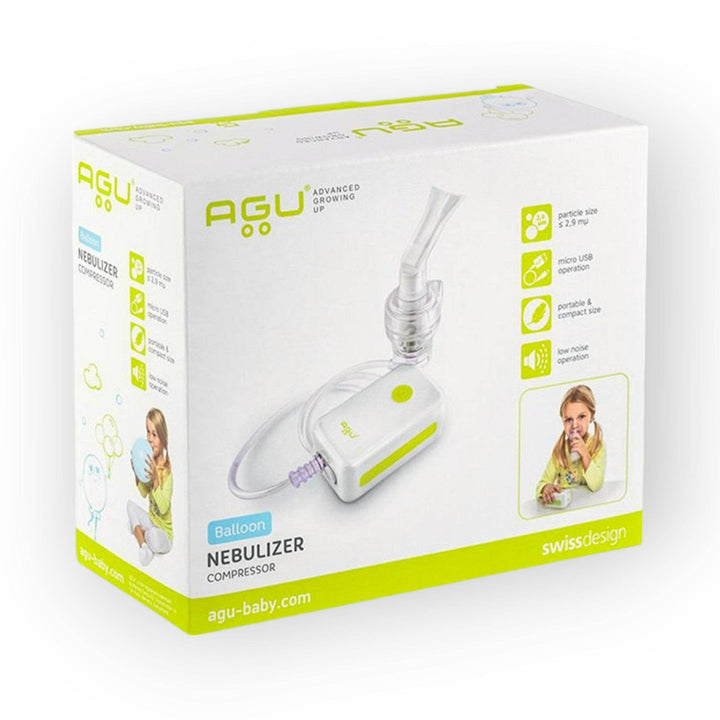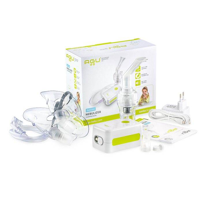 Agu Baby Balloon Compressor Nebulizer Green/White is the smallest and handy, most low noise compressor nebulizer from Agu. Agu Baby Balloon Compressor Nebulizer can be used both at home and during trips and is equipped with a power regulator, you may never exceed recommended speed of medication nebulization. Due to its small dimensions, it does not produce excess noise & it has been designed for the maximal comfort of both children and adults. This wonderful nebulizer offers the most comfortable alternative to inhalers. It’s a small machine that offers optimal support in cases of asthma, nasal congestion, hay fever and other respiratory diseases. It can be operated from the power bank when the stationary power supply is unavailable and can be inclined up to 45°. MMAD particle size is 2.9 um, spraying speed - 0.3 ml/min. AGU means more comfort for the child, an easier life for the parents, and new opportunities to improve and enrich everyday life. Ergonomic, practical, intuitive to use and easy-to-care for product with application solutions simplify daily procedures and assures full enjoyment at every level.