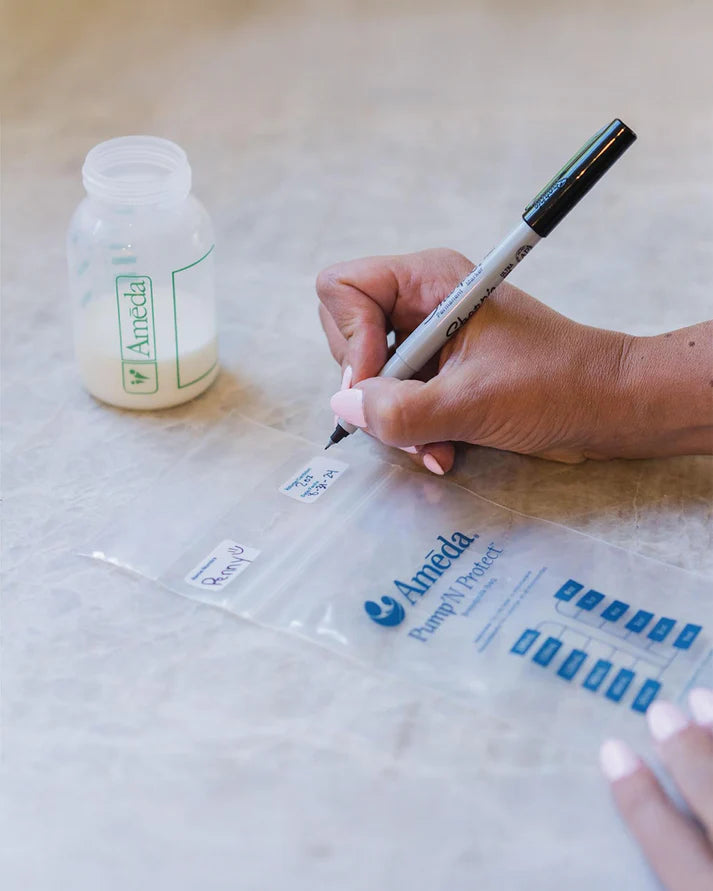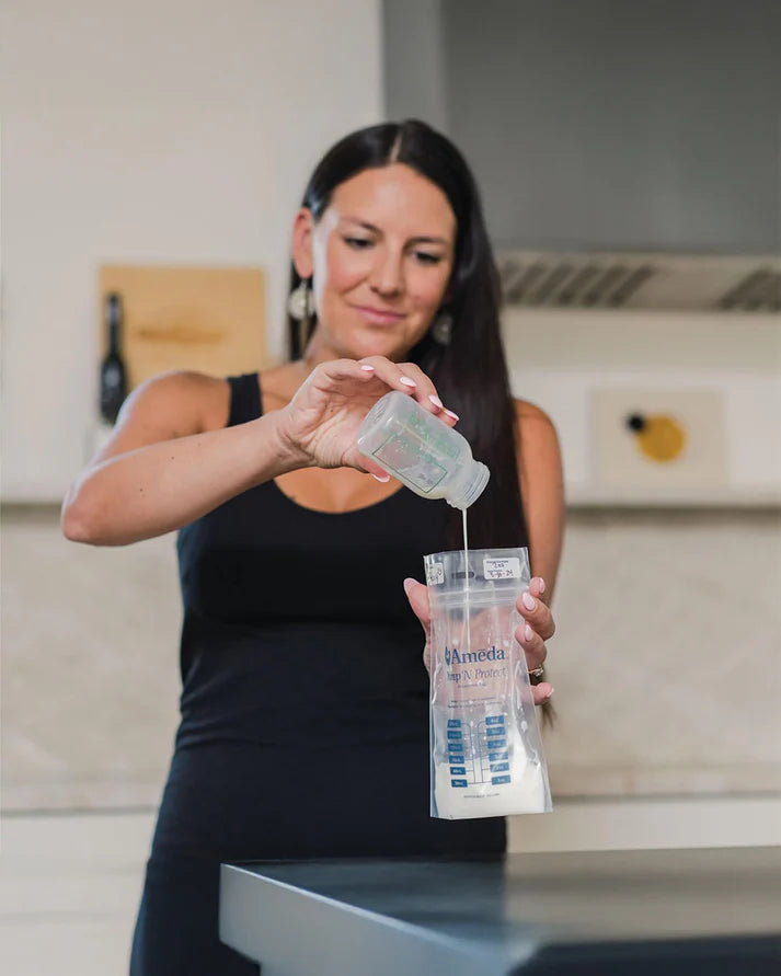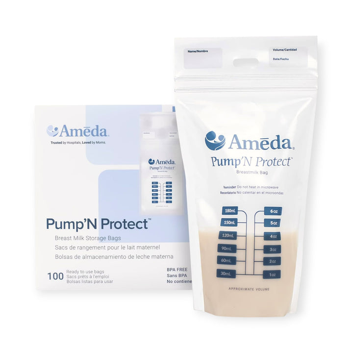 The Ameda Pump ‘N Protect® Breast Milk Storage Bags offer a convenient and efficient solution for storing precious breast milk. Designed for use with Ameda HygieniKit Milk Collection Systems, these bags allow moms to pump directly into them using easy-to-use adapters (sold separately). The bags feature a double zip seal, reinforced side seams, and a gusset bottom to ensure safe storage, reduce waste, and simplify the transfer of milk.