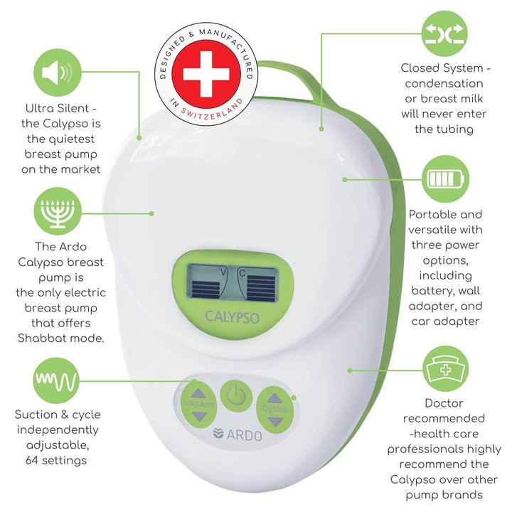 Ardo Calypso Double Plus Electric Breast Pump is intended to be used by lactating women to express and collect milk from their breast. The Calypso breast pump features independent vacuum and cycle adjustment with 64 total settings. "Vacuum Seal" technology creates a closed system means no milk in the tubes or pump. Includes three different sizes of breast shells to ensure that every mother can find the right size to suit her nipple. The soft Optiflow massage inserts (26mm) actively massage the breast and ensure efficient and gentle expression.