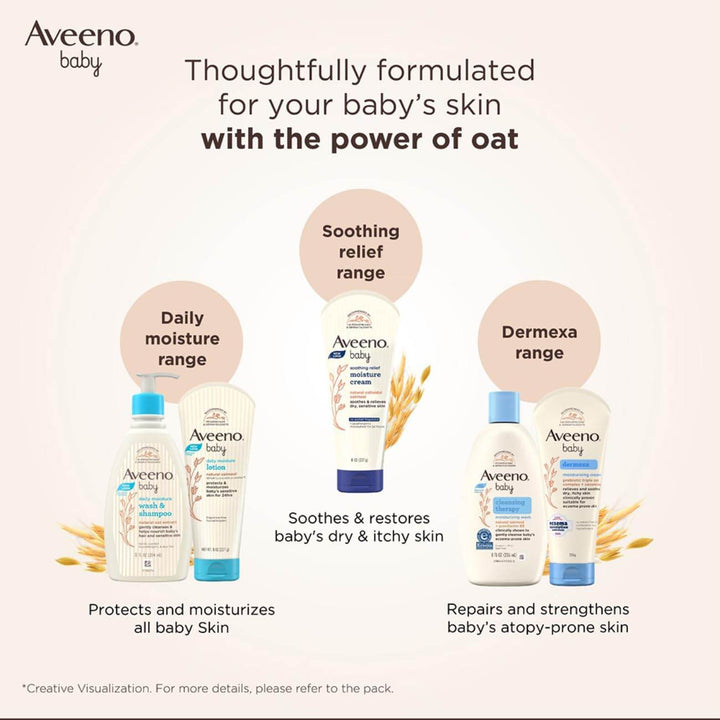 Helps prevent and protect your baby’s skin from dryness. AVEENO® Baby Soothing Relief Moisture Cream with natural Colloidal Oatmeal is designed to soothe and help protect the dry, sensitive skin of your precious little one. This baby cream is also clinically proven to moisturize for 24 hours.