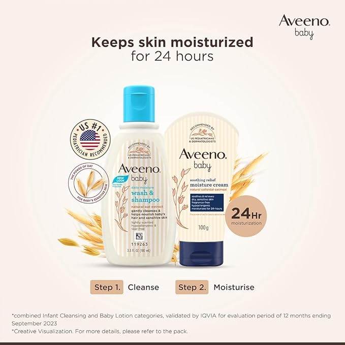 Helps prevent and protect your baby’s skin from dryness. AVEENO® Baby Soothing Relief Moisture Cream with natural Colloidal Oatmeal is designed to soothe and help protect the dry, sensitive skin of your precious little one. This baby cream is also clinically proven to moisturize for 24 hours.