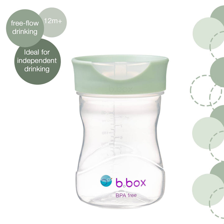 Lets little kids drink like big kids. The training cup is the ideal way for kids to learn to drink from a cup. The training cup mimics the flow of a big kids cup, by funnelling liquids into the rim for easy free-flow drinking. The cup also features a unique water window in the lid so kids can learn to see water as they’re drinking and judge how much to tilt their cup. Interchangeable base and lid means you can switch between the spout, sippy cup and training lids as baby grows.