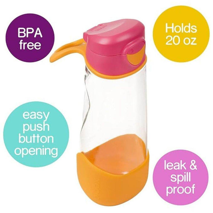 b.box Tritan Sport Spout Drink Bottle 600ml Strawberry Shake Pink Orange