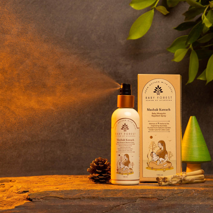 The 100% natural blend of essential ayurvedic herbs for your tiny tots, a combination of Bhustarah (Lemongrass oil), Cedarwood, and Lavender Oil creates a protective layer over your child’s skin and is traditionally renowned in Ayurveda to keep away mosquitoes and other insects