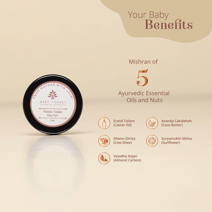 Baby Forest Nayan Anjan Baby Kajal for Nourished and Thickened Eyelashes Ayurvedic - 5 gm