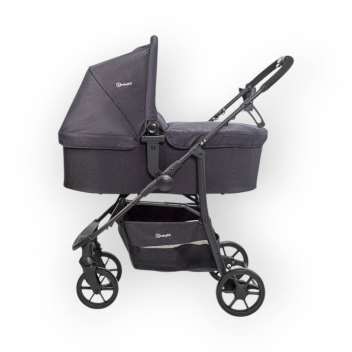 The 3in1 Styles from babyGO is a trendy 3in1 combination stroller with practical advantages and high safety standards. The 3in1 Styles impresses with its suspended front and rear tires and is easy to steer on any terrain.