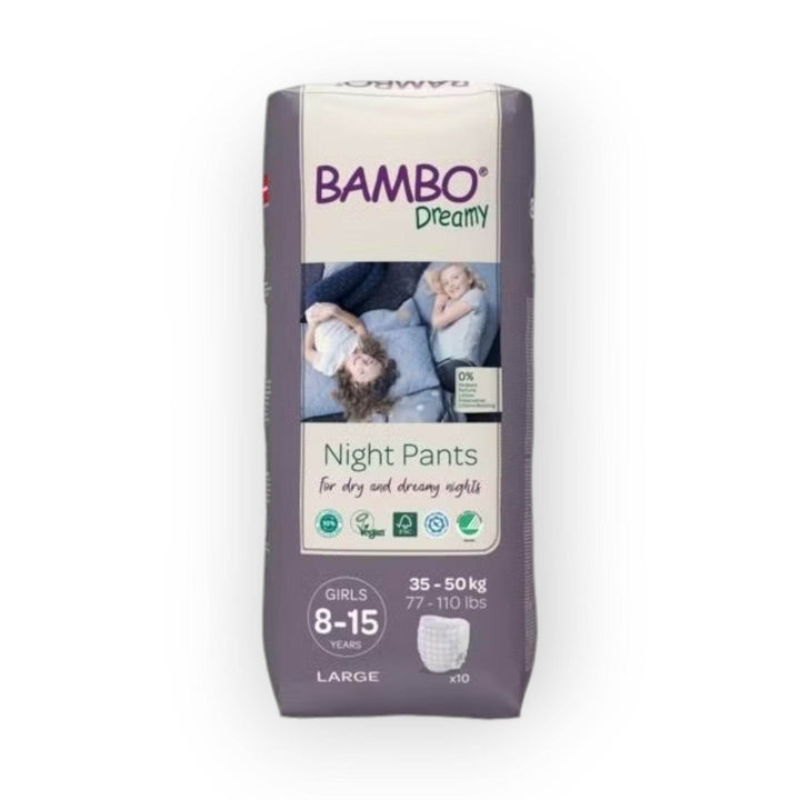 With Bambo Dreamy Night Pants, bedwetting will no longer interfere with a carefree and comfortable night's sleep. Additionally, the Dreamy Night Pants are dermatologically tested and certified according to the Nordic Swan Ecolabel, Asthma Allergy Nordic, and the Forest Stewardship Council (FSC