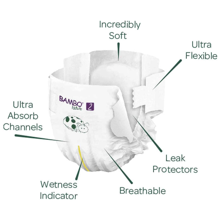Bambo Nature Taped Diapers Standard Packs, were the first baby nappies in the world to carry the Nordic Swan eco label Bambo Nature nappies are soft and super thin, but with one of the most absorbent cores of any nappies on the market.