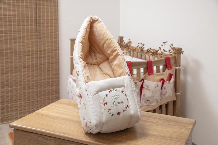 Our Be Caring Sleeping Bag encloses your baby in soft, cotton padding on all sides, giving your baby a snug, cosy space. The padding also protects your baby from hard or uneven surfaces.