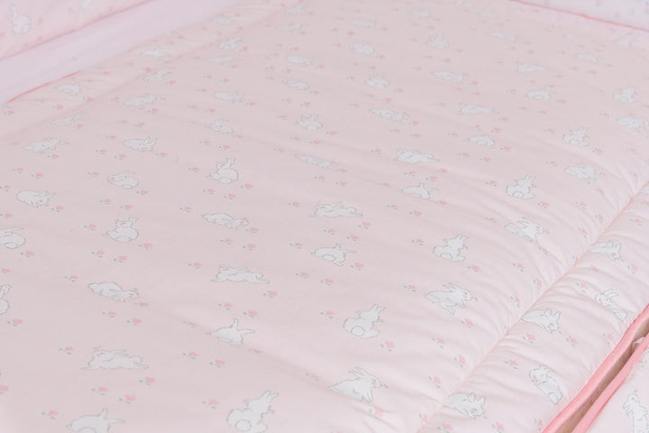 Our Be Happy Comforter provides an additional layer of comfort to the cot bedding and cosiness to the nursery. Made with 100% cotton fabric, it is soft, breathable, and perfect for your little ones delicate skin. The inner padding provides natural warmth and keeps the babys body temperature in its normal range. All materials used are clean, eco-friendly, and without any additional chemical treatments.