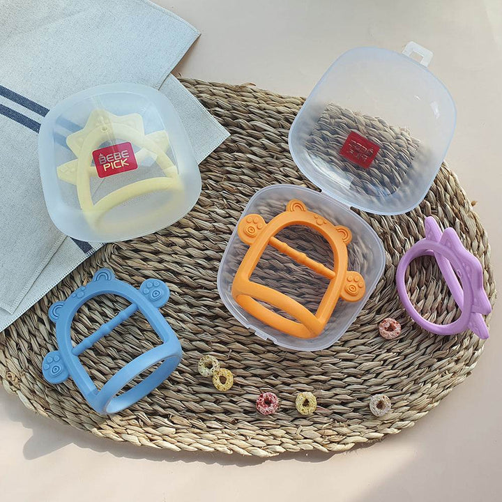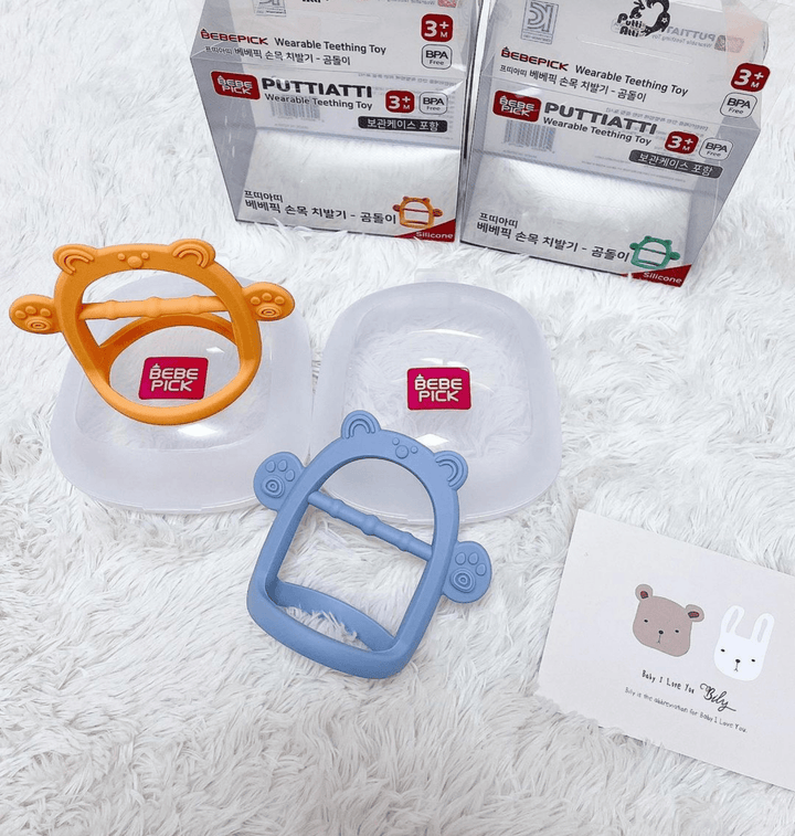 The BebePick Peekaboo Wearable Teething Toy in blue is the perfect solution for soothing your baby's gums during the teething phase. Designed as a wearable wrist toy, it allows your little one to easily grip and chew, offering relief from teething pain. The bear-shaped design adds an adorable touch, and the soft, non-toxic, BPA-free material ensures it's safe for babies. The toy can be worn on the wrist for easy access, so your baby can enjoy the comfort of teething relief wherever they go.
