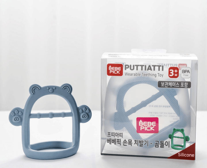 BebePick Peekaboo Wearable Teething Toy-Bear, Blue