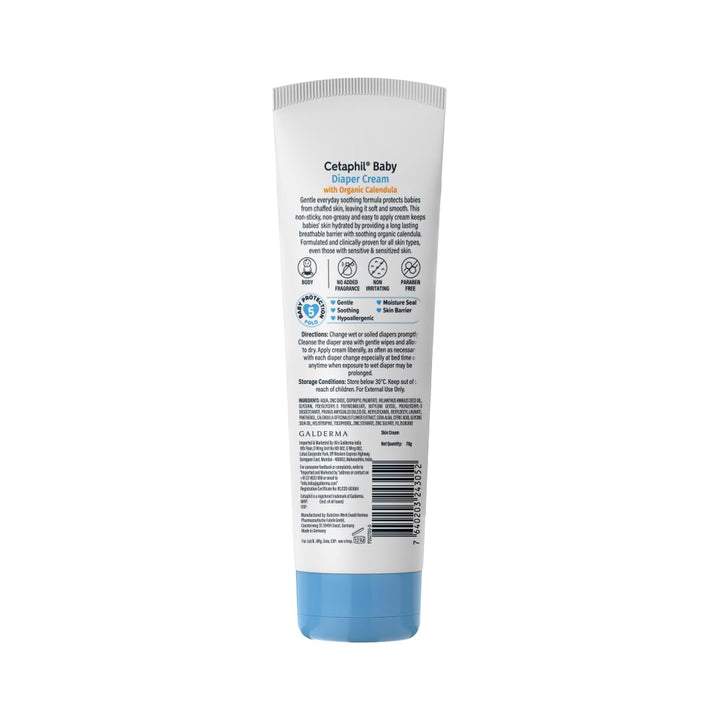 Cetaphil Baby Diaper Cream is a gentle everyday soothing formula which protects babies from chaffed skin, leaving it soft and smooth. This non-sticky, non-greasy and easy to apply cream keep babies' skin hydrated. It is enriched with natural ingredients ( like Chamomile, Sunflower seed oil, Soybean oil and shea butter) & Vitamin E, improves diaper rash. Formulated & clinically-proven for all skin types, even those with sensitive skin