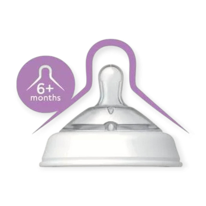 Chicco's NaturalFeeling teats allows to replicate the natural and instinctive attachment to the mother's breast. The Exclusive teat with rounded base supports comfortable position and natural latch for growing babies. The Chicco NaturalFeeling Fast Flow Teat is ideal to feed babies at 6M+. Thanks to the double anti-colic valve at the base of the teat, the Natural Feeling 6M + fast Flow teat helps prevent the ingestion of air during sucking, the main cause of colic and ensures continuous milk flow thereby reducing the risk of colic after feeding