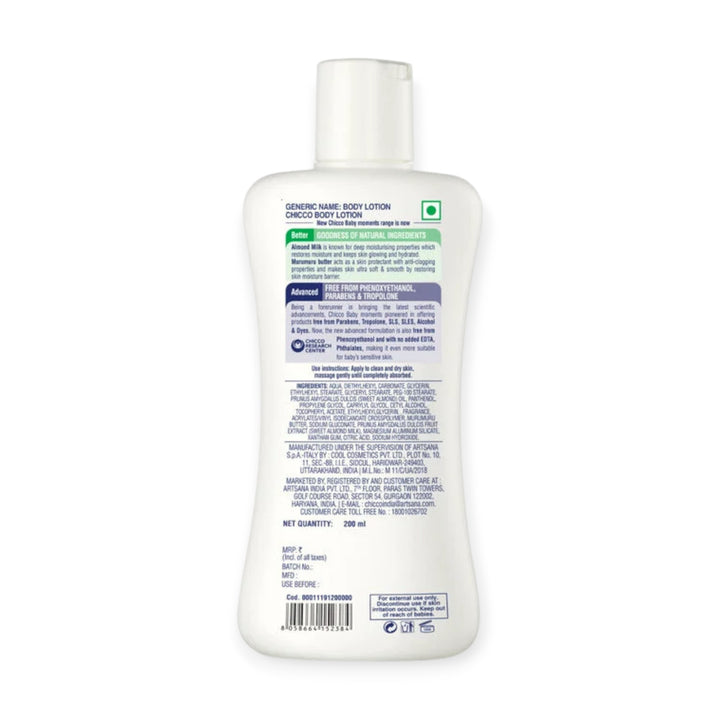 Chicco Body Lotion Almond Milk & Murumuru Butter 200ml Free Baby Cream(50g)