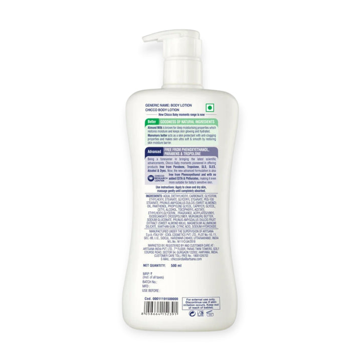 Chicco Body Lotion Almond Milk & Murumuru Butter 500ml Free Baby Cream(100g)