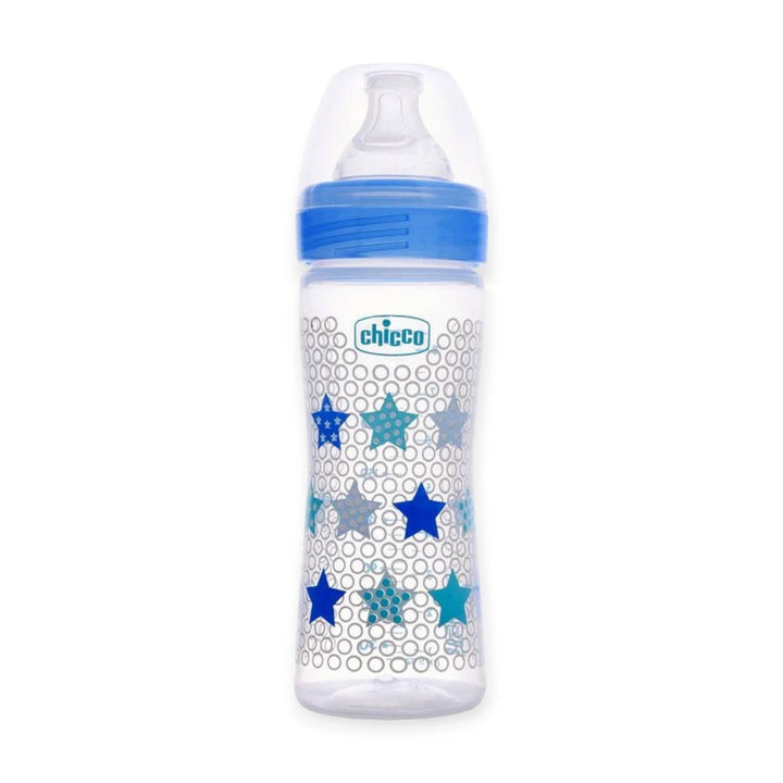 Chicco well-Being feeding bottle is the perfect choice for baby's feeding. Thanks to its special Physio teat, the Chicco well-being feeding bottle provides the baby with a comfortable and relaxed feeding experience, letting the baby drink at his own pace. The mother's nipple has inspired the shape of the Well-Being bottle's Physio teat to respect the natural sucking movement and helps in easy transition between breastfeeding and bottle feeding. The advanced anti-colic valve situated at the base of the teat helps prevent air ingestion while feeding and ensures continuous milk flow thus helps protect the baby from Colic, regurgitation (spitting-up), and irritability. Designed such that baby’s little hands easily grasp around the bottle. For parent’s ease, the bottle has a wide neck design, which provides easy and quick filling and is effortless to wash. Drip poof cap and bottle gear ensures safe closure and no leakage from the bottle. Made of BPA free polypropylene material, the Well-Being feeding bottles are safe and ideal for baby’s everyday feeding routine.