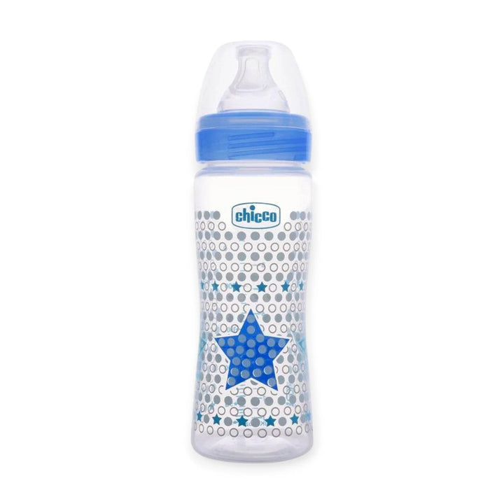 Chicco well-Being feeding bottle is the perfect choice for baby's feeding. Thanks to its special Physio teat, the Chicco well-being feeding bottle provides the baby with a comfortable and relaxed feeding experience, letting the baby drink at his own pace. The mother's nipple has inspired the shape of the Well-Being bottle's Physio teat to respect the natural sucking movement and helps in easy transition between breastfeeding and bottle feeding. The advanced anti-colic valve situated at the base of the teat helps prevent air ingestion while feeding and ensures continuous milk flow thus helps protect the baby from Colic, regurgitation (spitting-up), and irritability. Designed such that baby’s little hands easily grasp around the bottle. For parent’s ease, the bottle has a wide neck design, which provides easy and quick filling and is effortless to wash. Drip poof cap and bottle gear ensures safe closure and no leakage from the bottle. Made of BPA free polypropylene material, the Well-Being feeding bottles are safe and ideal for baby’s everyday feeding routine.