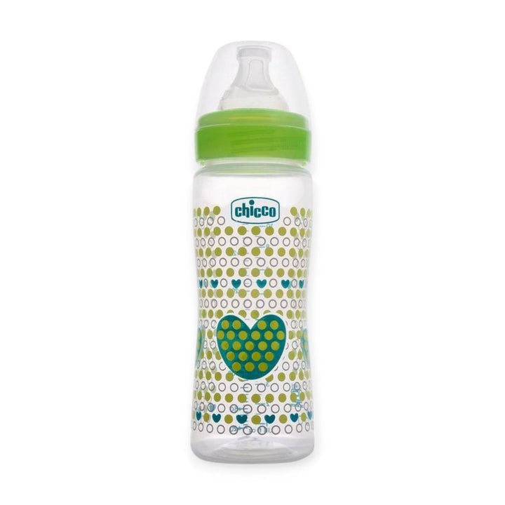 Chicco well-Being feeding bottle is the perfect choice for baby's feeding. Thanks to its special Physio teat, the Chicco well-being feeding bottle provides the baby with a comfortable and relaxed feeding experience, letting the baby drink at his own pace. The mother's nipple has inspired the shape of the Well-Being bottle's Physio teat to respect the natural sucking movement and helps in easy transition between breastfeeding and bottle feeding. The advanced anti-colic valve situated at the base of the teat helps prevent air ingestion while feeding and ensures continuous milk flow thus helps protect the baby from Colic, regurgitation (spitting-up), and irritability. Designed such that baby’s little hands easily grasp around the bottle. For parent’s ease, the bottle has a wide neck design, which provides easy and quick filling and is effortless to wash. Drip poof cap and bottle gear ensures safe closure and no leakage from the bottle. Made of BPA free polypropylene material, the Well-Being feeding bottles are safe and ideal for baby’s everyday feeding routine.