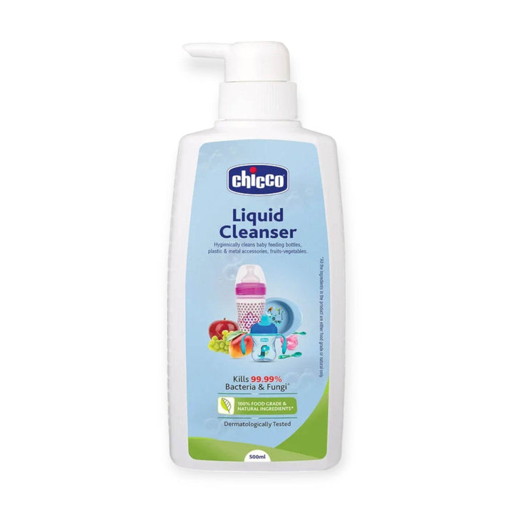Chicco liquid cleanser helps to keep your baby safe from germs naturally. Effective cleaning of baby feeding essentials: Chicco Liquid Cleanser is specially designed to provide hygienic & safe cleaning for baby feeding essentials like feeding bottles, nipples, sipper cups, pacifiers, gum massagers, plastic and metal feeding accessories and even fruits and vegetables. 100% Food grade and Natural: Chicco liquid cleanser is formulated with only food grade & natural ingredients, thus providing a pure and powerful cleaning for baby's feeding bottles and accessories. Kills 99.99% of Germs: Chicco Bottle wash liquid eliminates not just 99.99% of bacteria but 99.99% of fungi too. It also removes milk residues, stubborn stains, and odour from feeding bottles, cups, cutlery, and also breast pumps. All-in-one-cleaning: It helps remove pesticide residues, germs and dirt also from the surface of fruits and vegetables making it one-stop solution for parents to clean and disinfect baby utilities. Chicco bottle wash has been dermatologically tested on sensitive skin of mothers making it gentle on the skin, thus meant for everyday cleaning of baby's accessories.