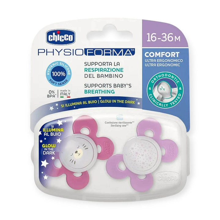 Chicco Soother Comfort Lumi Girl Sil 16-36m 2pcs