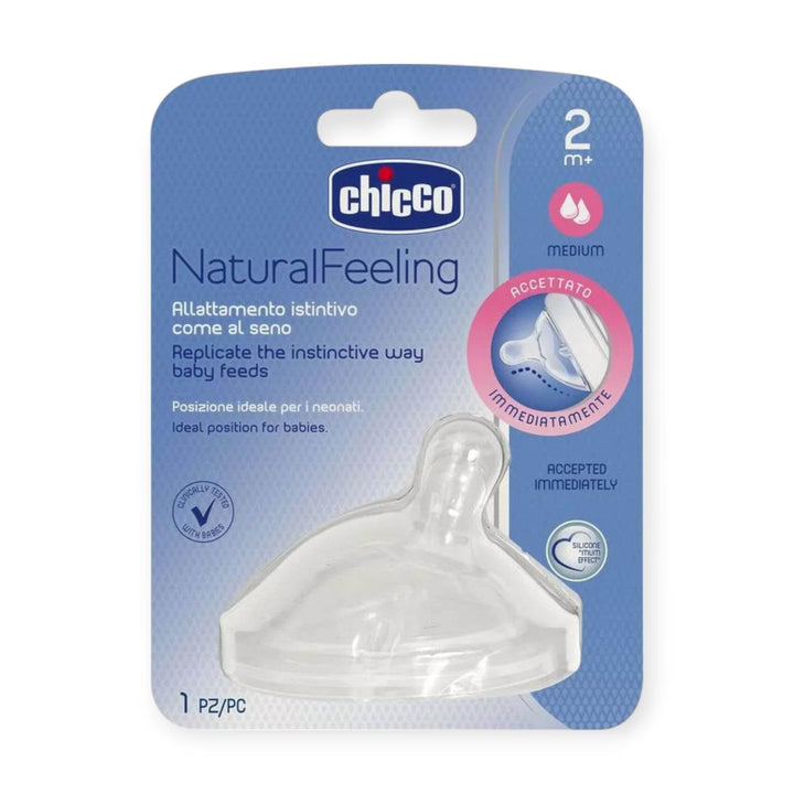 If you've chosen to bottle feed your infant and want to supplement breastfeeding with a bottle, you must select the right bottle for your child. Chicco's NaturalFeeling teats allows to replicate the natural and instinctive attachment to the mother's breast. The Exclusive angled teat with rounded base supports comfortable position and natural latch for new-born. The Chicco NaturalFeeling Teat 2m+ (medium flow) is ideal to feed new born babies. The breast-like shape of the teat eases the transition between breast and bottle feeding. Thanks to the double anti-colic valve at the base of the teat, the Natural Feeling 2M + medium Flow teat helps prevent the ingestion of air during sucking, the main cause of colic and ensures continuous milk flow thereby reducing the risk of colic after feeding.