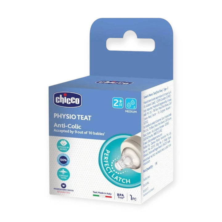 The Chicco Physio teat adapts perfectly to the baby's mouth and respects the natural sucking movement. Made of extra soft silicone, the Physio Chicco teat perfectly simulates the mother's breast, offering the baby a comfortable feeling that facilitates acceptance.