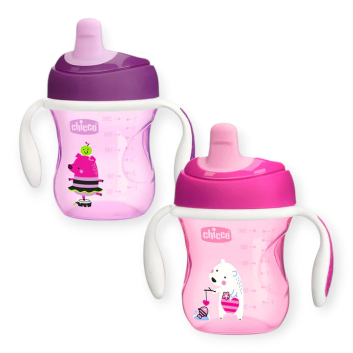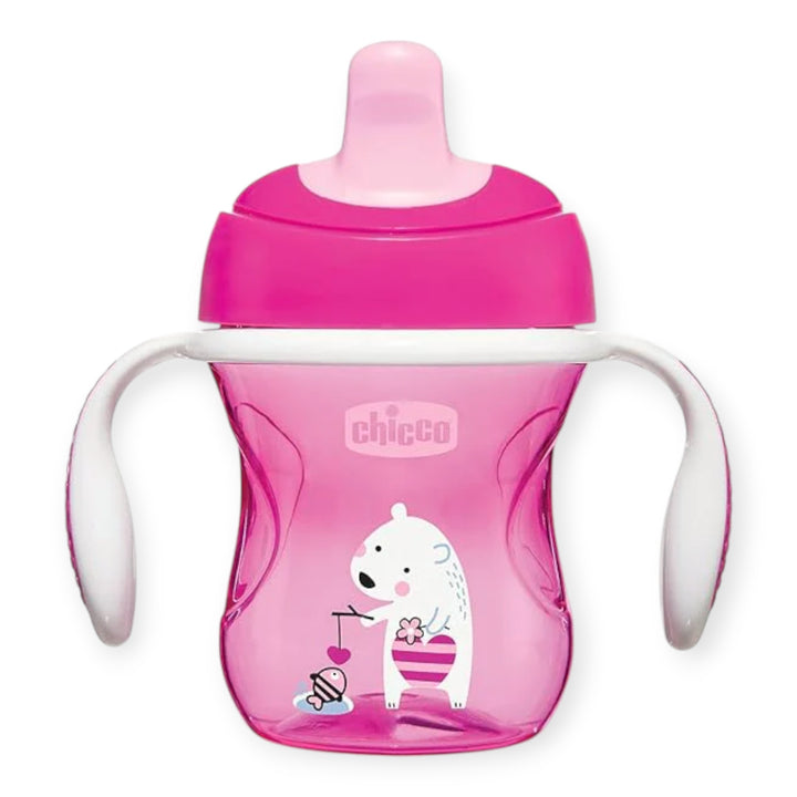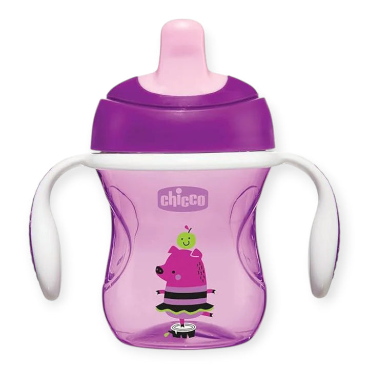 Chicco Baby Training Cup 6M+ with Semi-Soft Spout is bite-resistant and can withstand teething! It's the ideal cup for teaching little ones to drink independently, thanks to the shape and design of the spout that helps in proper lip positioning. This spill-proof cup also helps to keep things clean. Gentle sipping unlocks the flow of liquid through a reversible lever, allowing you to turn the cup upside down and around without spilling a drop of baby's favourite beverage. The handles are removable and offer easy grip for holding by little hands.