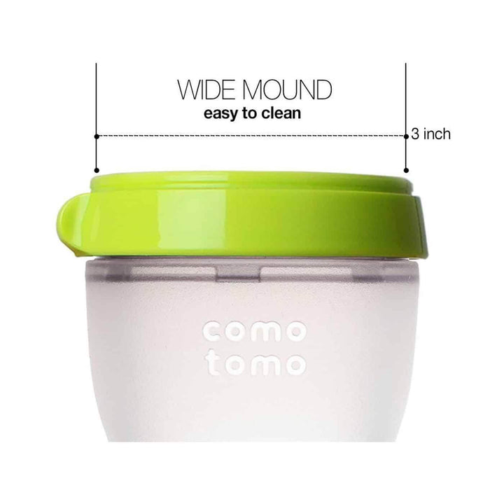Comotomo Baby Bottles feature innovative and sensible design to most closely mimic natural breastfeeding. Our naturally shaped, soft, silicone nipples are ideal for babies who have trouble transitioning from nursing to bottle-feeding. Your little one will love to hold onto the skin-like, soft and squeezable body that is like no other bottle in the world. And you will fall in love with our wide-neck design for brushless, stress-free, cleaning bliss. Our bottles are equipped with truly innovative vents that are smartly designed to prevent colic, while completely eliminating annoying leaks. They are quite possibly the most thoughtful bottles ever made. 150ml/5oz bottles come with medium flow nipples (1 hole) ideal for 0-3 months.