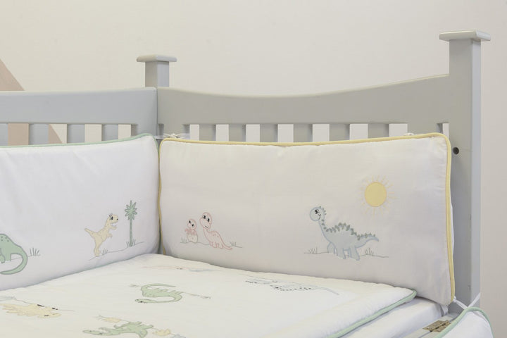 At Blooms and Butterflies, coziness is our design philosophy. Our Dawn of Time four piece Bumper Cover Set is made from 100% soft, breathable cotton material, providing a perfectly comfortable surface for your baby. Designed to fit most cots; secure the ties to the four sides of the cot and regularly check that they are tied in place for babys safety.