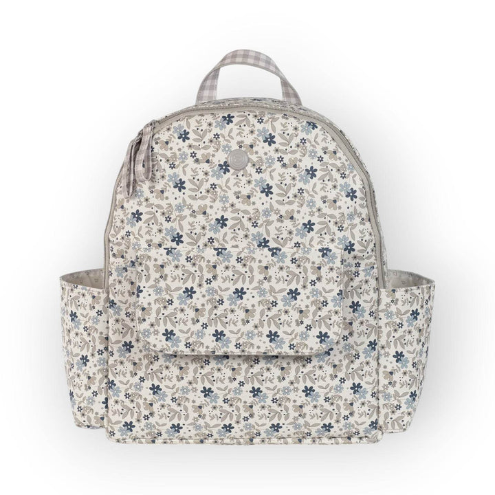 A lovely floral blue backpack diaper changing bag from the Delia collection by Pasito a Pasito.