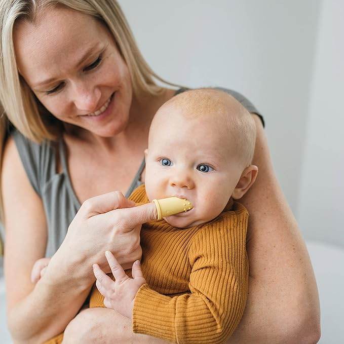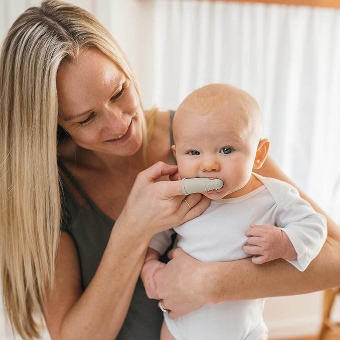 - Soft, silicone bristles gently clean baby’s gums and emerging teeth