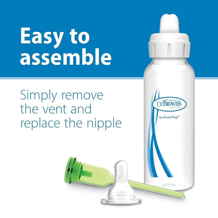 Turn your Dr. Brown’s Options+ Bottle into a sippy bottle for easy bottle-to-cup transition for baby. Take the bottle baby is familiar with and turn it into a sippy cup, with Dr. Brown’s Milestones Options+ Sippy Spout. Just remove the Dr. Brown’s Options+ vent and replace the current bottle nipple with the Sippy Spout for gradual learning. The simple-to-sip spout is 100% silicone and assembles in seconds. Easy to clean, dishwasher (top rack) and sterilizer safe. BPA free. 6m+.