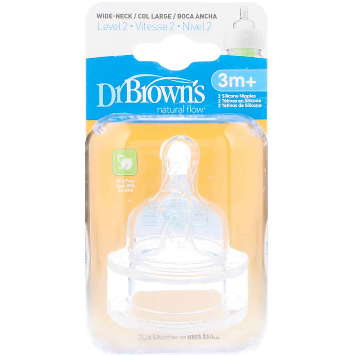 Dr. Brown's Original Wide-Neck Nipple, Level 2 (3m+) Teat are made of super-soft, high-grade silicone, each nipple level provides a different flow rate.