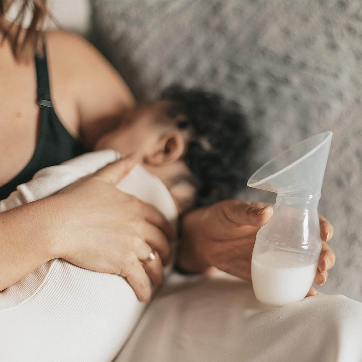 No more wasted breast milk! The Dr. Brown's Milkflow One-Piece Breast Pump uses hands-free, gentle suction to collect and save every last drop. Using soft suction to draw out milk, the Milkflow One-Piece Breast Pump is your silent companion to catch leaking milk while breastfeeding. Simply place it on your breast, squeeze the base of the pump once to create gentle suction, and let it go to work - it's hands-free milk collection! The 100% silicone material is soft against your skin, while the easy-pour design ensures you can transfer your breast milk into the included Dr. Browns' bottle and store your breast milk with the secure storage cap without losing a drop. The portable and practical design of this milk saver - along with the included drawstring bag - makes it simple to take on the go to pump and relieve engorgement while you're out and about. To use it as a pump, just gently and slowly squeeze and release for more suction power. Store or feed on the spot with the included Dr. Brown's Options+ Anti-Colic Bottle and Storage Cap. Dishwasher (top rack) and sterilizer safe. BPA Free.
