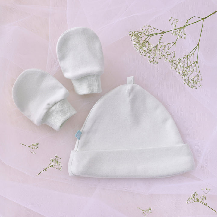 The Enchanted Beginning Bundle includes everything your baby needs for those first precious days a soft bamboo cotton Receiving Blanket, cozy Sleep Suit, snug Mittens, a Beanie Bonnet, and our signature Theater Bag to carry it all. Thoughtfully designed to welcome your baby in warmth, comfort, and a touch of wonder.