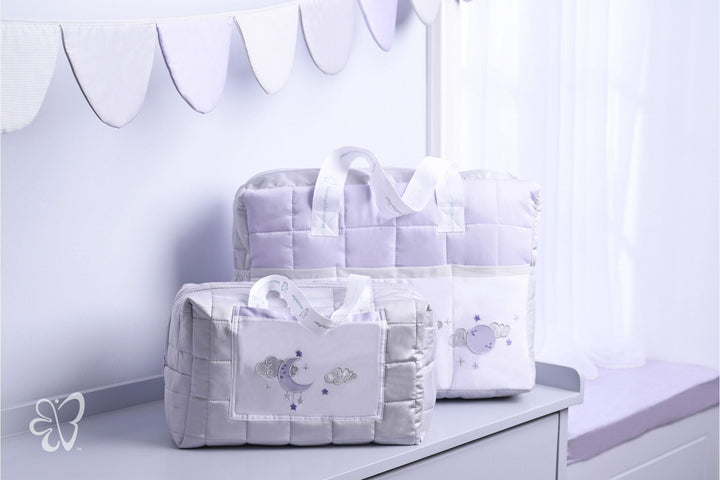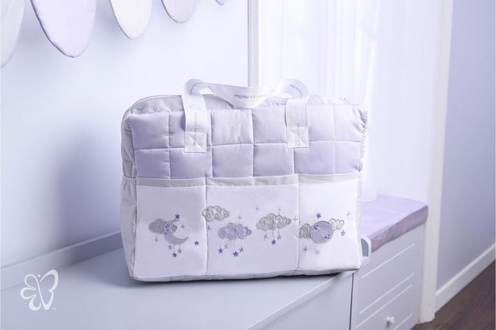 The Dreamy Baby Bag is all you need to carry your babys belongings wherever you go. It is lightweight and the 100% quilted fabric makes it reusable and convenient.