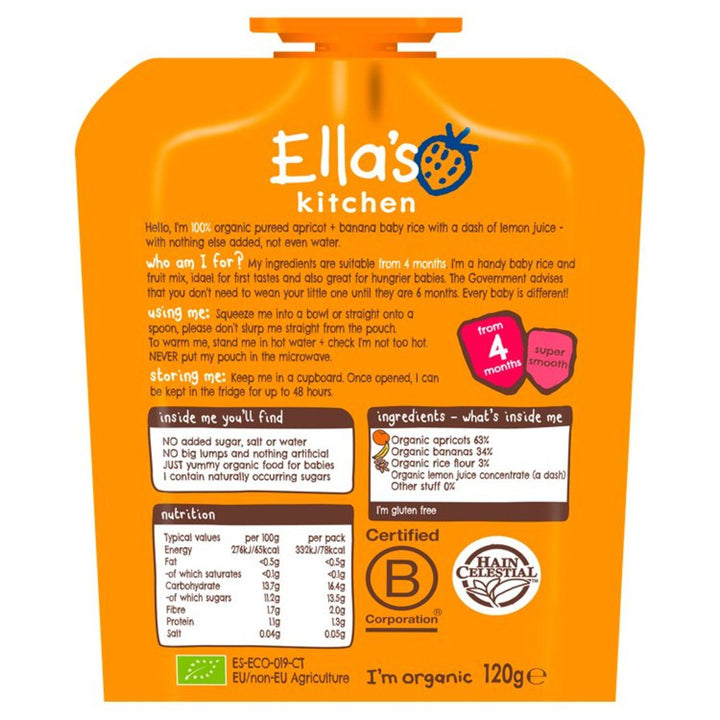Ella's Kitchen Apricot + Banana Baby Rice, 4m+, 120g