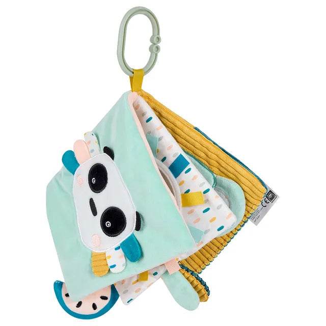 This sensory book starring friendly and tender animals is perfect for introducing them to the manipulative game, as each page includes small, very simple activities that will help them perfect their hand movements. It also includes different sensory stimuli for them to discover by using their senses of sight, hearing and touch. Each of its 6 pages is different, but they all have a common goal: to awaken babies' curiosity by combining fabrics of different colors and textures with other elements to bite, pull, grab and discover.