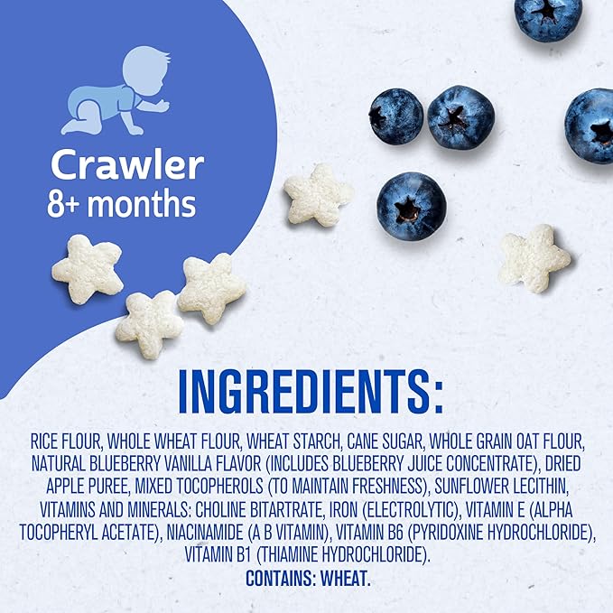 Rice flour, whole wheat flour, wheat starch, cane sugar, whole grain oat flour, dried apple puree, natural blueberry vanilla flavor, (includes blueberry juice concentrate), less than 1% of : mixed tocopherols (to maintain freshness), sunflower lecithin.