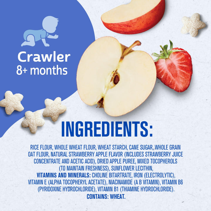 NUTRITIONS & INGREDIENTS: RICE FLOUR, WHOLE WHEAT FLOUR, WHEAT STARCH, CANE SUGAR, WHOLE GRAIN OAT FLOUR, DRIED APPLE PUREE, NATURAL BLUEBERRY VANILLA FLAVOR (INCLUDES STRAWBERRY JUICE CONCENTRATE), LESS THAN 1% OF: MIXED TOCOPHEROLS (TO MAINTAIN FRESHNESS), SUNFLOWER LECITHIN,