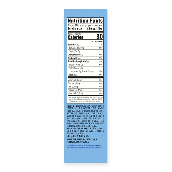 Whole grain wheat flour, enriched flour (wheat flour, niacin, reduced iron, thiamine mononitrate, riboflavin, folic acid), cane sugar, high oleic sunflower oil, whey (from milk), less than 1 molasses, natural flavor, salt, sunflower lecithin, baking soda, vitamins and minerals: iron (ferric orthophosphate), vitamin e (alpha tocopheryl acetate).