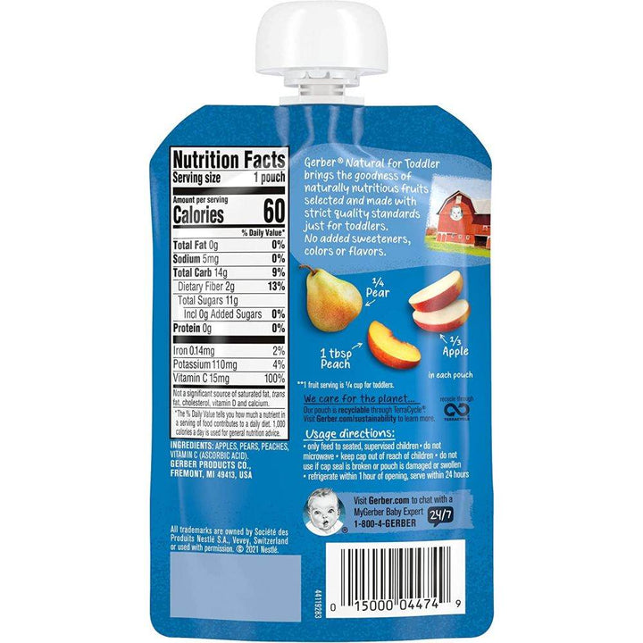 Gerber Natural for Toddler Puree, Apple Pear Peach, 99g - BabyAmore