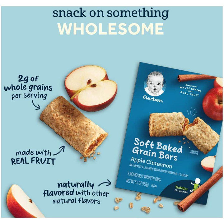 Gerber Soft Baked Grain Bars, 12+ Months, Apple Cinnamon, 8 Bars, 156g - BabyAmore